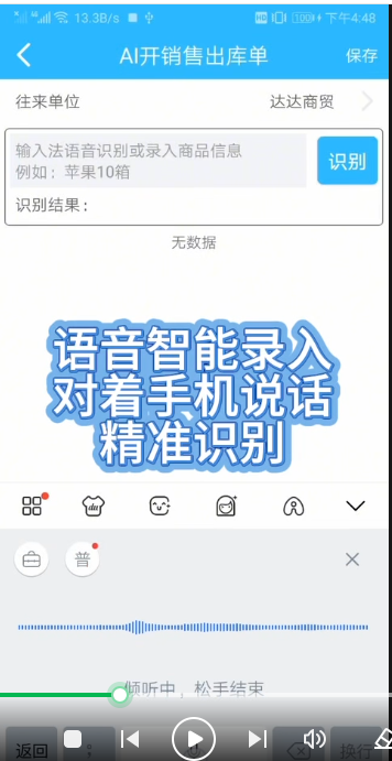 1.语音智能录入:对着手机说 "两箱红茶、三提抽纸",普通话精准识别,话音未落,单据已实时生成,手忙时也能轻松开单。