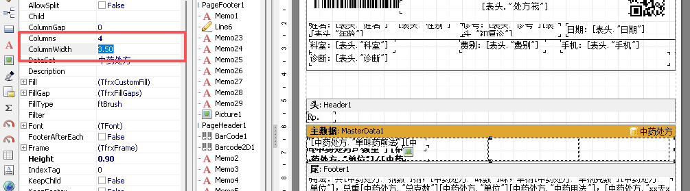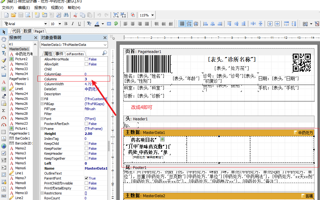 那么如何在高级打印样式设计时,将默认处方默认一行3列的样式调整为一行4列的样式呢?见图: