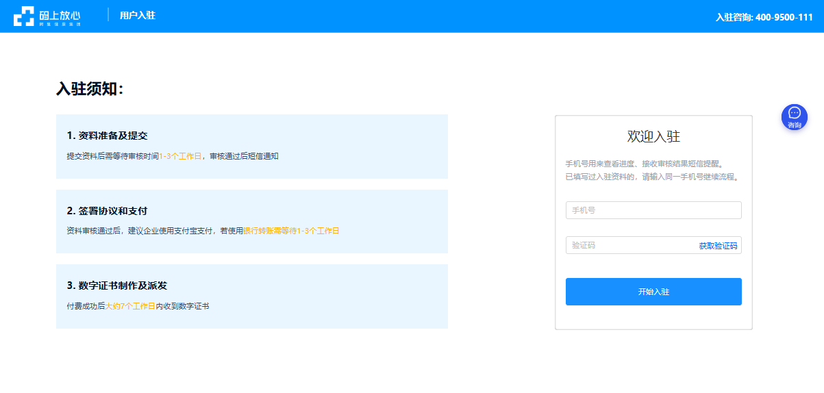 1.2 为了保证码上放心平台的持续可用性,建议使用机构负责人的电话进行申请
