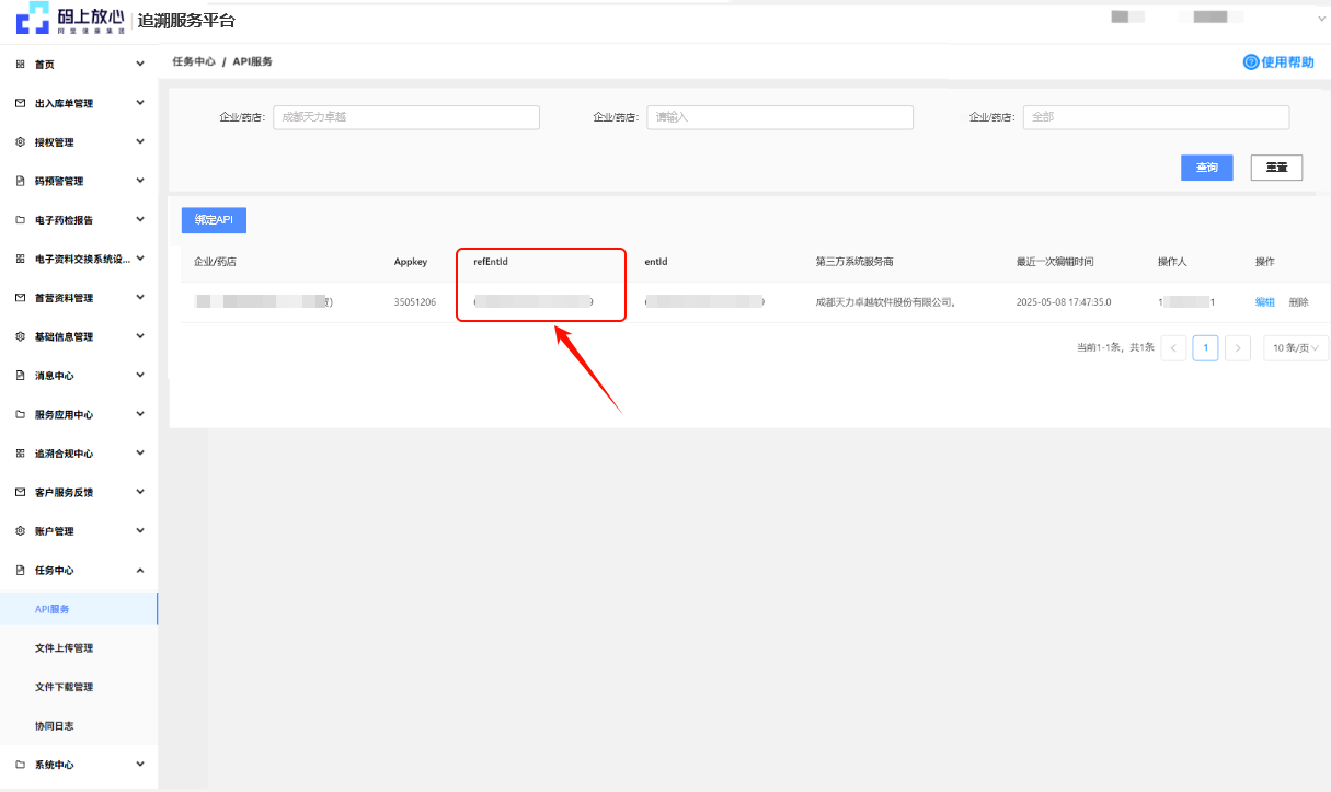 提交绑定信息后,请用户获取对应【 refEntId 】