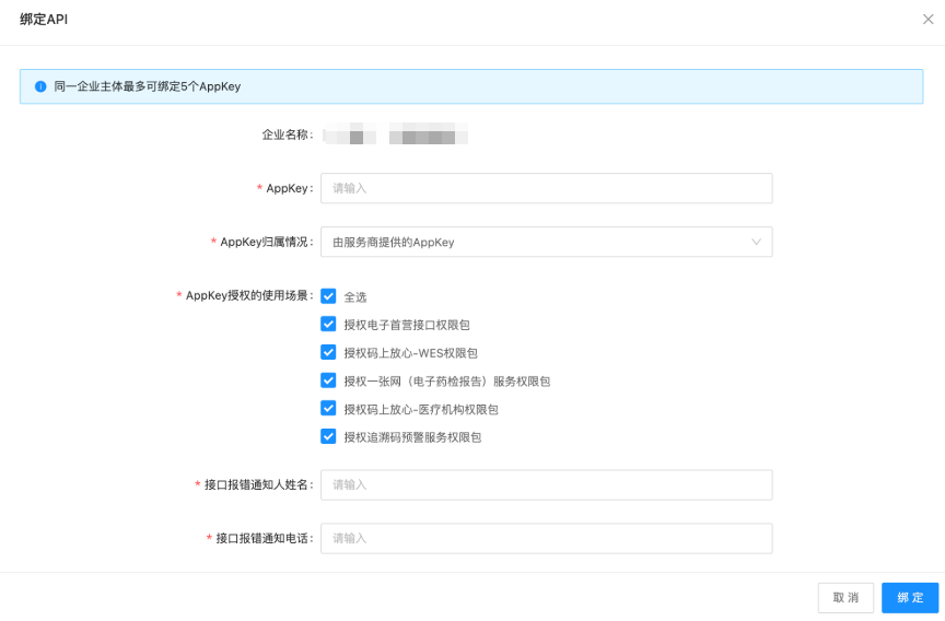 选择APPKEY归属情况:【 由服务商提供的AppKey 】