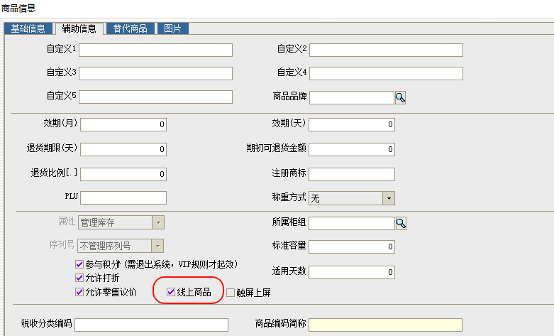 将需要在请货通中展示的商品调整为【线上商品】。设置价格、待展示图片,确认商品库存和商品销售策略。